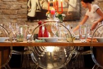 12 people can cook in the kitchen at the same time in Tallinn, Estonia. Bigger groups can be divided in two, taking part in cooking and a side-programme alternatively. Side-programmes include training on wines, beers or teas . The dining table can seat up to 24 people, while the place itself can host max 40 people for cocktail parties.